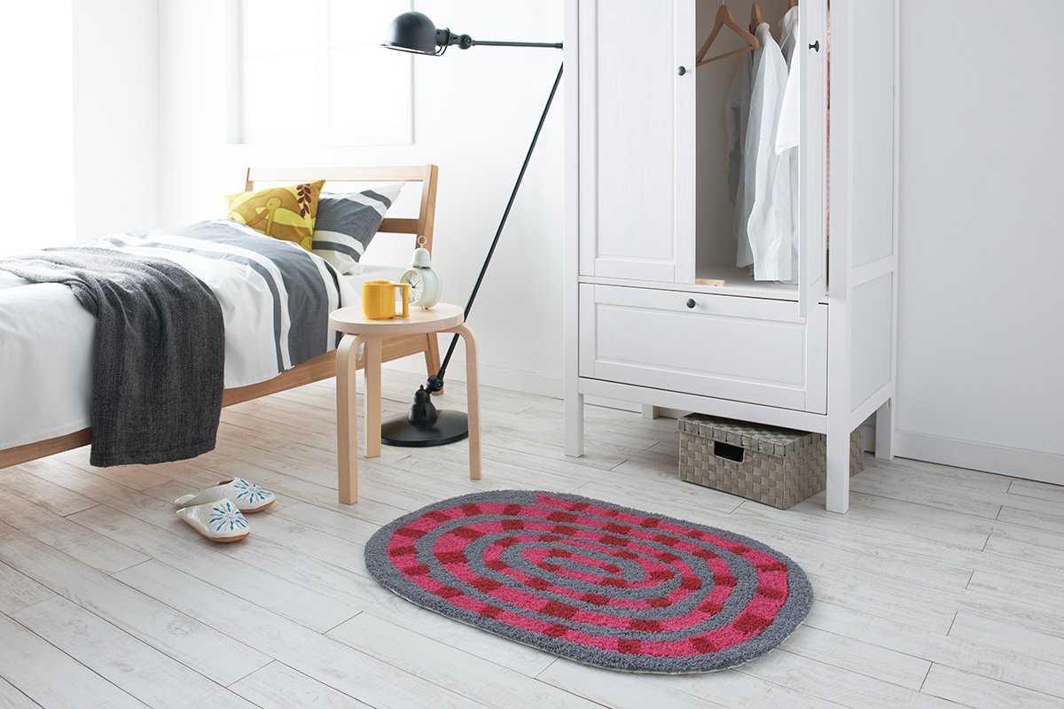 テキスタイルデザイナーの鈴木マサル氏とコラボレーションした、部屋のドアを開けるのが楽しみになるようなラグマットです。