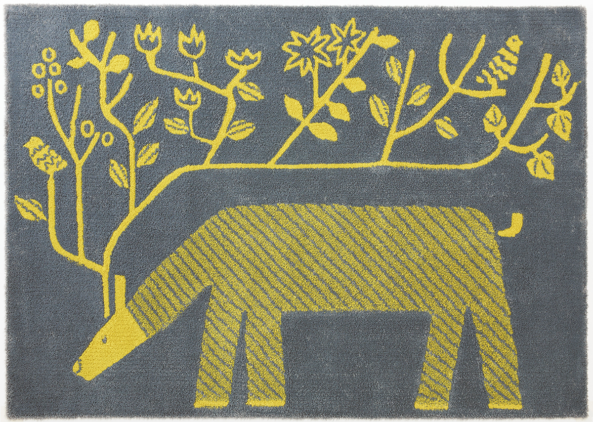 アーティストのイマジネーションに、伝統の手法でかたちを与えたオリジナルラグ。
