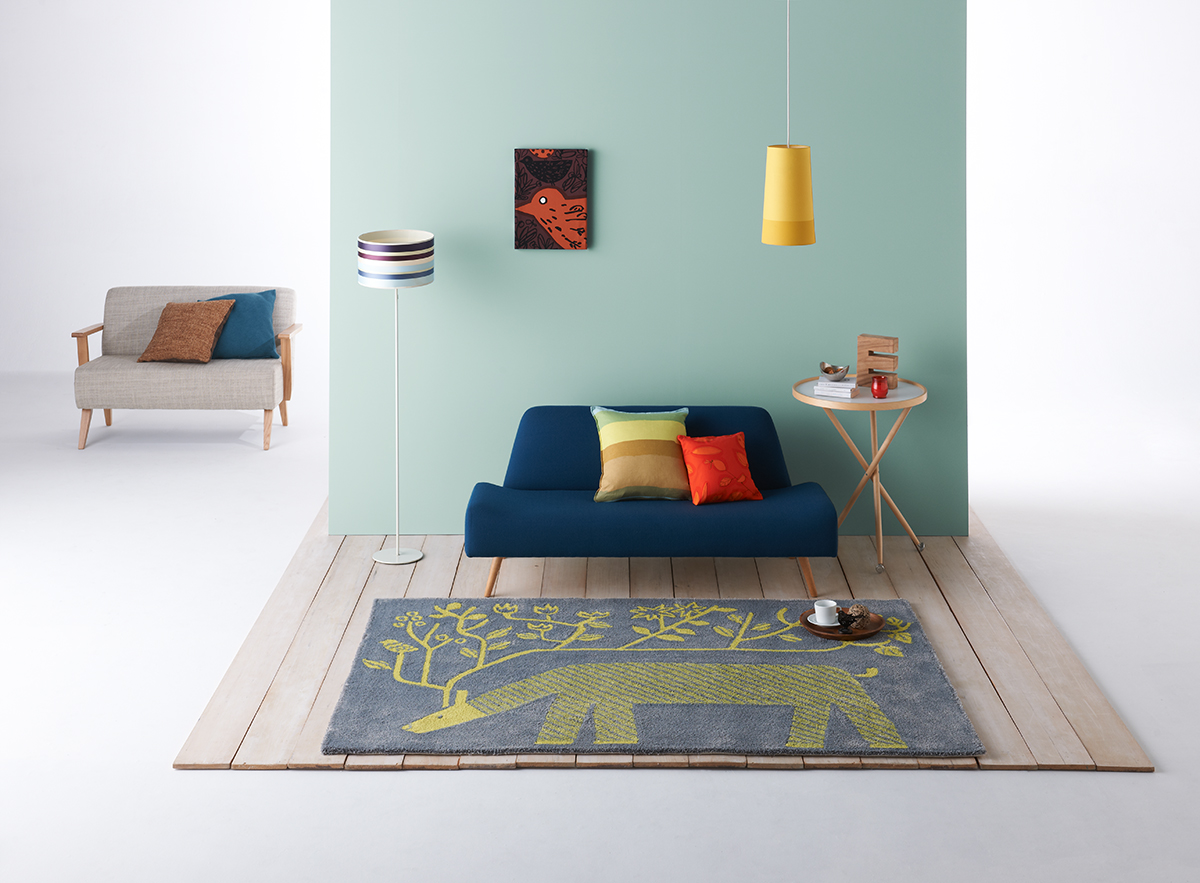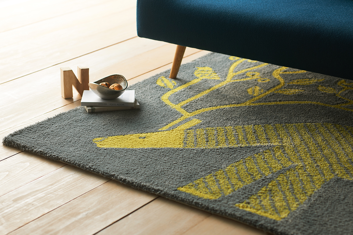 テキスタイルデザイナーの鈴木マサル氏とコラボレーションした、部屋のドアを開けるのが楽しみになるようなラグマットです。
