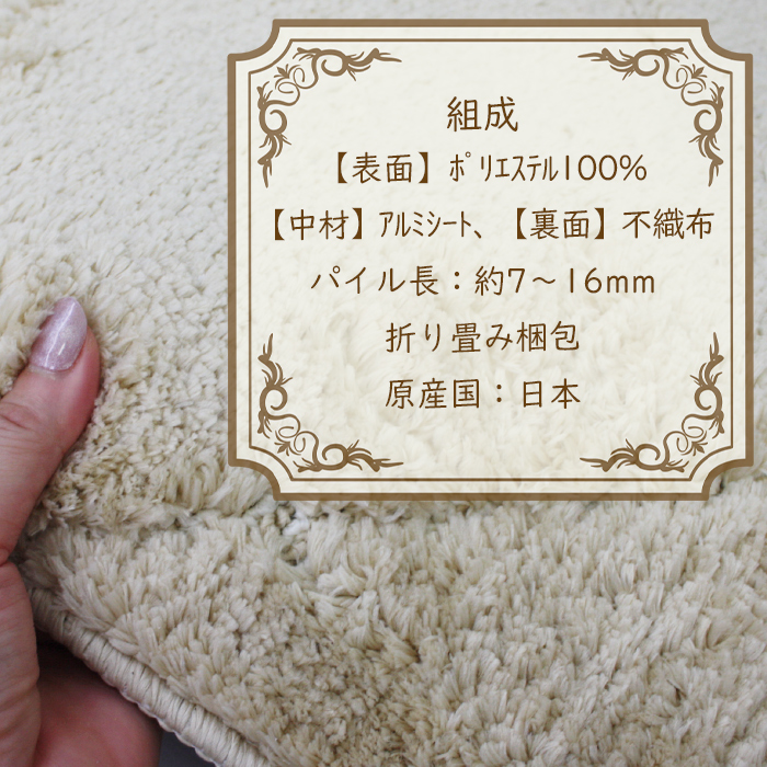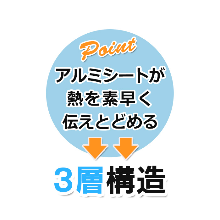 - 表面:ポリエステル100%、裏面:不織布、中材:アルミシート入り