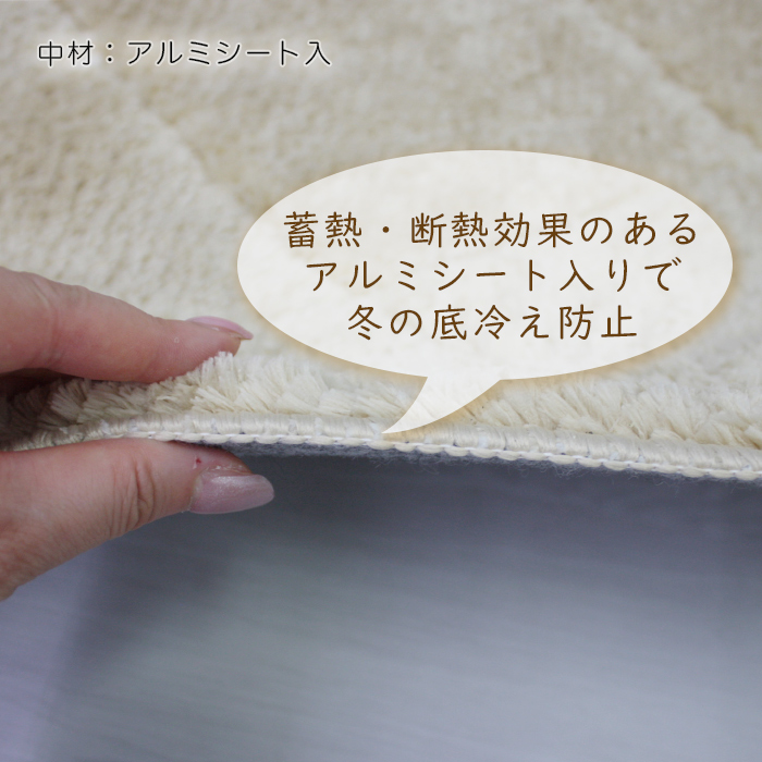 表地と裏地の間にアルミシートをサンドしたラグです。