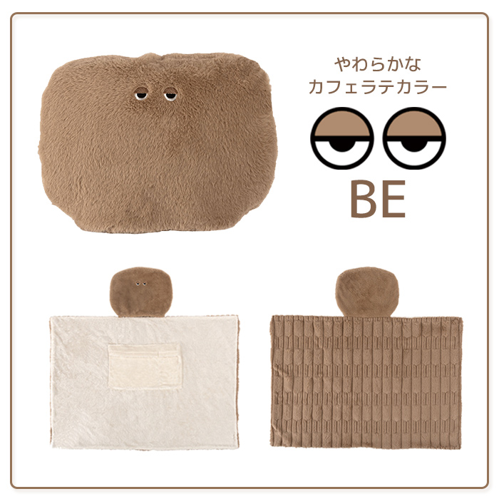 ●目のついた丸い箇所が収納ポケットとなっており、膝上に収まるサイズ感のクッションに変身。