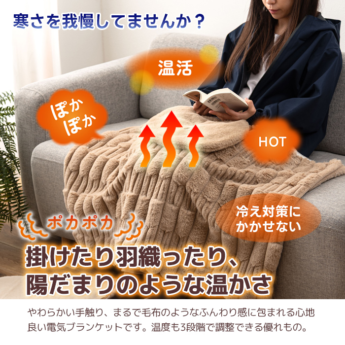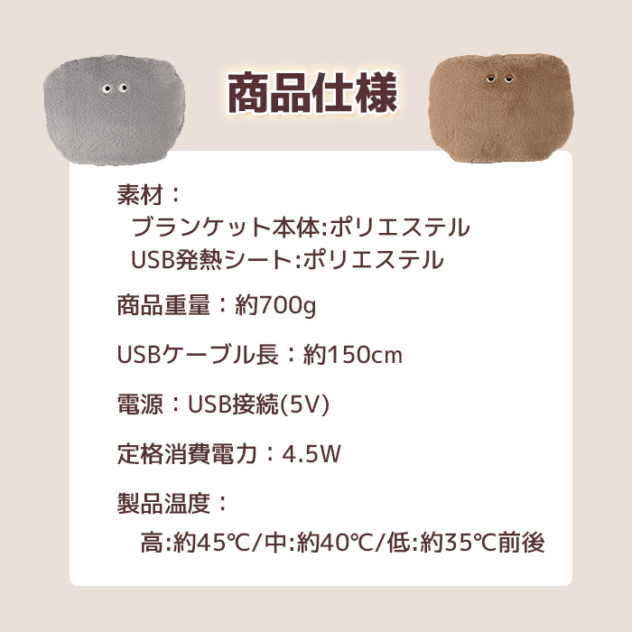 掛けたり羽織ったり、陽だまりのような温かさ やわらかい手触り、まるで毛布のようなふんわり感に包まれる心地良い電気ブランケットです。USB接続でお家、オフィスでもご使用できます。3段階の温度調整可能。 |
