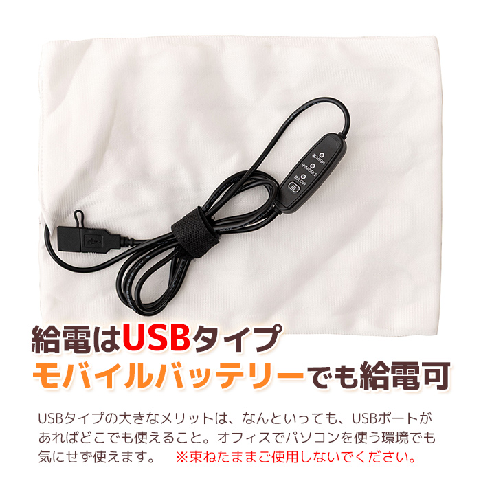 ●モバイルバッテリーやUSB電源に接続するだけで、収納されているヒーターが温まります。