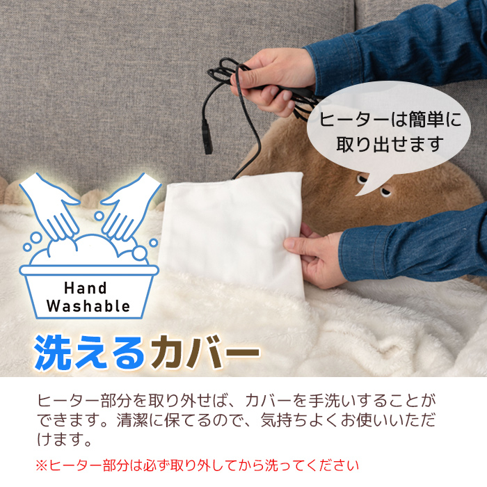 ●ヒーターは取り出しが可能で、カバーを丸洗いすることができます。