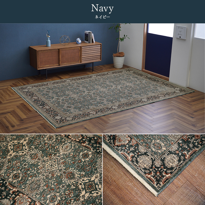 | 高級感あふれる上品なクラシック柄のウィルトンラグ。 超高密度でノット数が1,000,000ノットと高いため、重厚感のあるしっかりした踏み心地のウィルトンラグです。 特殊な糸をつかって表面に凹凸感を表現できたことで、デザインとあいまって立体感のあるラグに仕上がりました。 パイルが短いため季節感がほとんどなく、年中お使いいただけます。 ホットカーペットカバーや床暖房にも対応しております。 (ラグに厚みがある場合・ラグの密度が高い場合は、熱が伝わりにくくなる場合がございます。) ※掲載写真は表記サイズと異なる場合がございます。 |