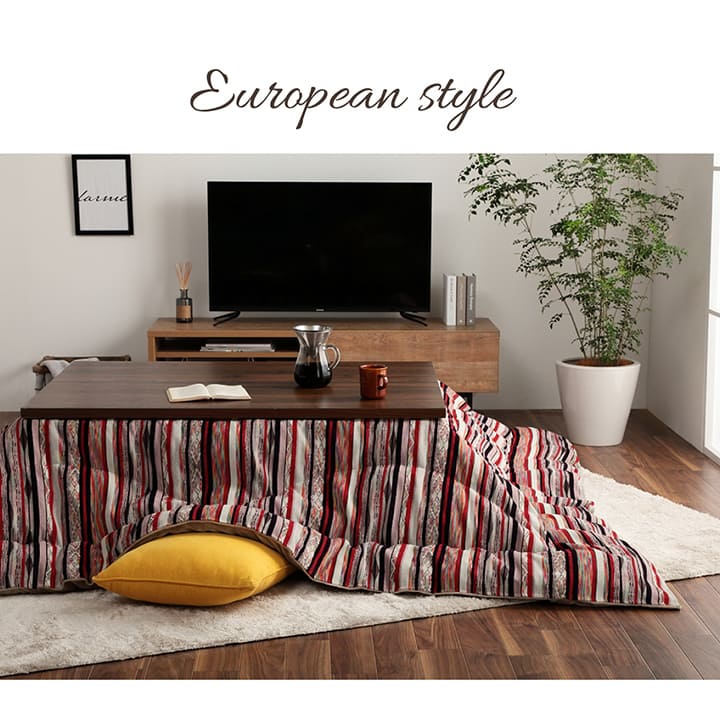 | "多彩な色糸を使ってデザインの異なる柄と幅で作り上げたストライプ調のこたつ布団。 ジャガード織で織った細かいデザインとしっかりとしたトルコ製の生地が高級感を演出してくれます。 裏地はあったかフランネル生地でなめらかな肌触り。 中綿には弾力性と保温性に優れた東レマッシュロン綿をたっぷり使用。 表地のデザインとふっくらした見た目が合わさって高級感漂う一品です。 ふっくらとしたボリューム感は国内で綿入加工をしている商品だからできる仕上がり。 熱が逃げにくいフィットキルト加工であたたかさを維持してくれます。 3サイズ展開 ※モール糸を使用しているため、粘着クリーナーでお掃除されますと繊維が抜けることがあります。ご使用はお控えください。 ※こたつ台、敷布団は別売りです。 ※ふとんをやぐらの中に押し込んだり、座イスやイス全体をこたつの中に入れたまま使用しないでください。ふとんがヒーターに当たらないようにご使用ください。(火災の原因になります)ご使用により、ふとんが焦げた場合につきましては、返品・交換を承ることができませんので、あらかじめご了承ください。 ※掲載写真は表記サイズと異なる場合がございます。 ※画面上のカラーはご使用ブラウザやモニターの設定により、実物とは若干異なる場合がございます。 あらかじめご了承の上、ご注文をお願いいたします。 |