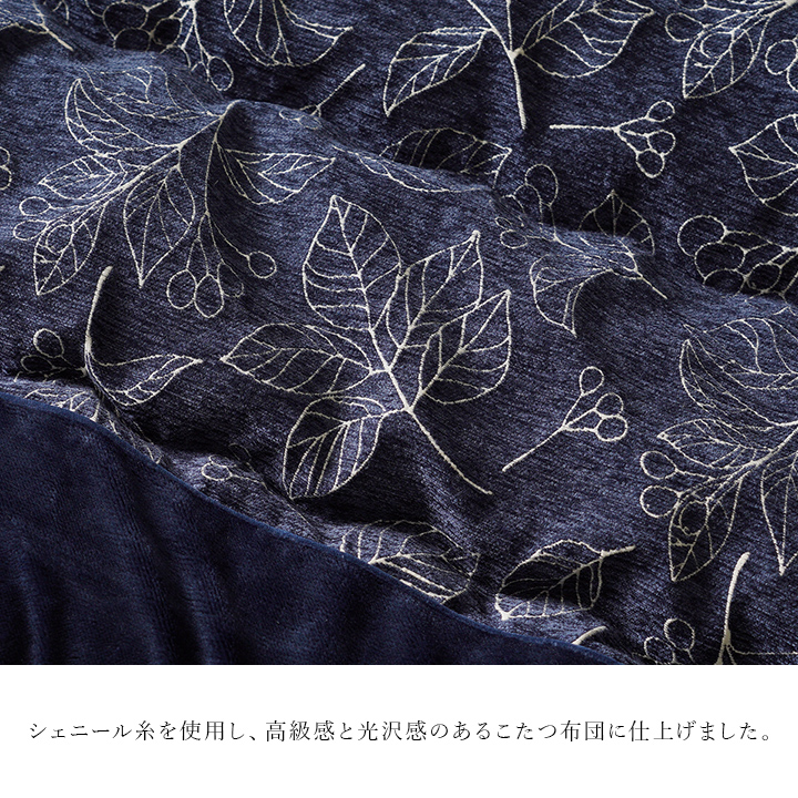 | シンプルと北欧柄がほどよくミックスされ、高見えするこたつ布団。 シェニール糸を使用し、高級感と光沢感のあるこたつ布団に仕上げました。 ふっくらとしたボリューム感は国内で綿入加工をしている商品だからできる仕上がりです。 裏地にはあったか素材のフランネルを使用しています。 同じデザインのクッションを取り入れて、統一感のあるお部屋にアレンジもできます。 ※モール糸を使用しているため、粘着クリーナーでお掃除されますと繊維が抜けることがあります。ご使用はお控えください。 ※こたつ台、敷布団は別売りです。 ※ふとんをやぐらの中に押し込んだり、座イスやイス全体をこたつの中に入れたまま使用しないでください。ふとんがヒーターに当たらないようにご使用ください。(火災の原因になります)ご使用により、ふとんが焦げた場合につきましては、返品・交換を承ることができませんので、あらかじめご了承ください。 ※掲載写真は表記サイズと異なる場合がございます。 |