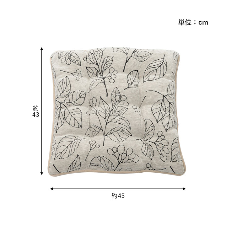 | 高級感のある、シェニールジャガード生地を使用した国内綿入れ加工のシートクッションです。 裏面滑り止め付きでずれにくい 椅子の上ではもちろん、座布団代わりでも使用できます。 ※表生地と中材は一体となっています。(カバー取り外し不可)", |