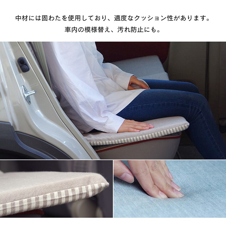 | シンプルなデザインのカークッションです。 インド綿100%のオーガニックコットンを使用し、ざっくりとした肌触りが特徴です。 中材には固わたを使用しておりますので適度なクッション性があります。 |