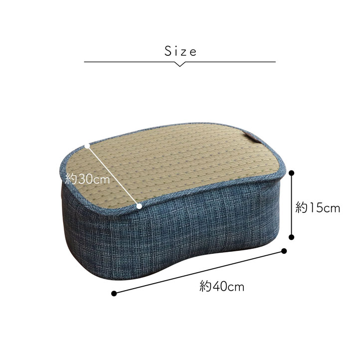 | 表地=い草(織込メセキ)裏地=ポリエステル 中材=発泡ポリスチレン |