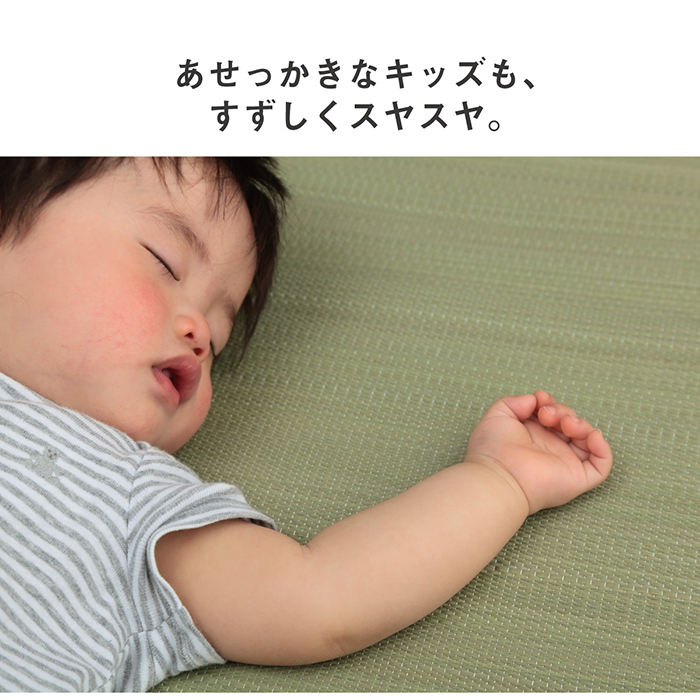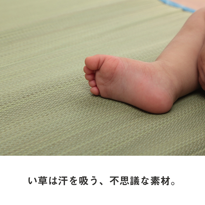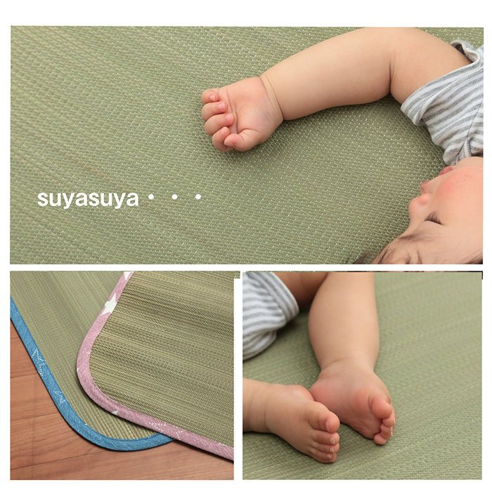 | "安心の「日本製」で作ったベビー用い草シーツです。い草最大産地である九州産のい草を使用しております。 洋室にも合うオシャレなデザイン。 い草には汗などのジメジメ感を軽減する吸湿性と抗菌防臭などの効果があります。 い草には汚れにくい性質があるので、定期的に乾いた雑巾や掃除機でゴミを取り除き、日陰干しをするだけで、お手入れ完了です。 ", |