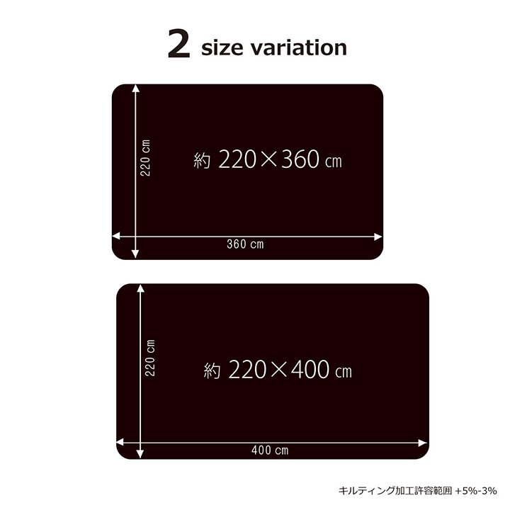 | 表地=ポリエステル 100%【フランネル】 裏地=ポリエステル 100%【不織布滑り止め】 中材=ポリエステル100%【巻き綿+固綿20mm】 |