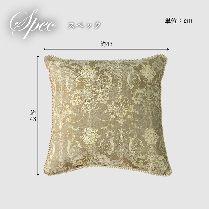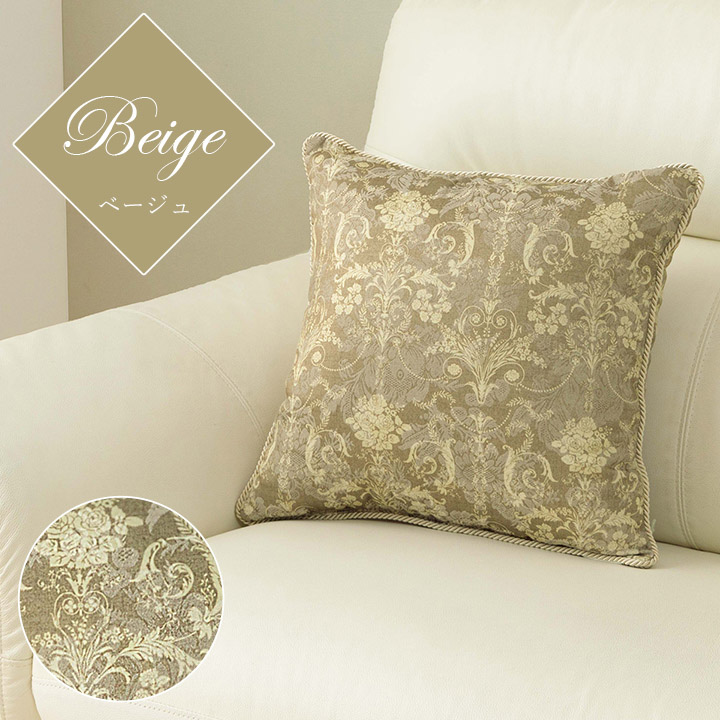 | お部屋をぱっと華やかにするエレガントな柄のセアテクッションです。 お部屋でのゆったり時間をお手伝いします。 安心の国内綿入れ加工です。ふかふか感をお楽しみください。 ※表生地と中材は一体となっています。(カバー取り外し不可)", |