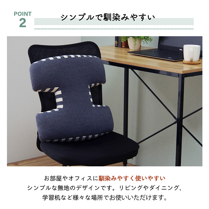 | オフィスワークやドライブなど長時間座りっぱなしの時の負担を軽減してくれます。背中全体をサポートしてくれるので、美しい姿勢を保つことができます。シンプルなデザインで場所を選ばず、オールシーズンご使用頂けます。 |