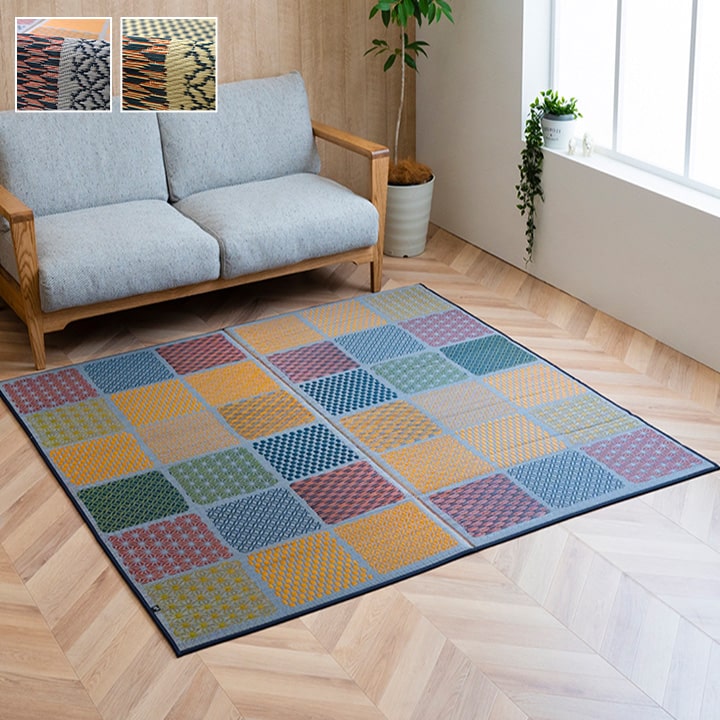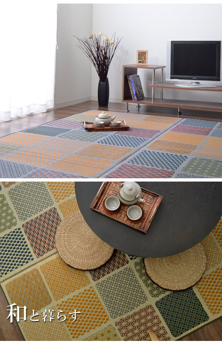 | 和室にも洋室にも合うモダンなデザインのい草ラグです。裏面にはフローリングを傷つけにくいウレタンフォームを使用しています。クッション性もあり思わずごろんと横になりたくなる肌触りとい草にいい香りが特徴です。国産(九州産)のい草を使用しているため一本一本が太く、表皮が厚く繊維がキメ細かいので弾力性があり、耐久性に優れています。い草には空気の自然浄化作用、湿度の調節作用などがあります。また汚れにくく、使用するうちに黄金色に変化し味が出ます。い草に青森ヒバエッセンス加工を施しています。(抗菌、防臭効果) |