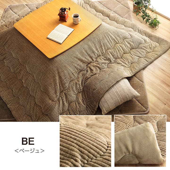 | コーデュロイ調のおしゃれなこたつ布団。 中綿には抗菌防臭機能付きの綿を使用しています。 表地はコーデュロイ調の凹凸ストライプとなっています。 裏地には肌触りなめらかなフランネル生地を使用しています。 部分暖房のこたつは電気代もおトクです。 ※掲載写真は表記サイズと異なる場合がございます。 ※ふとんをやぐらの中に押し込んだり、座イスやイス全体をこたつの中に入れたまま使用しないでください。ふとんがヒーターに当たらないようにご使用ください。(火災の原因になります)ご使用により、ふとんが焦げた場合につきましては、返品・交換を承ることができませんので、あらかじめご了承ください。 ※画面上のカラーはご使用ブラウザやモニターの設定により、実物とは若干異なる場合がございます。あらかじめご了承の上、ご注文をお願いいたします。 |