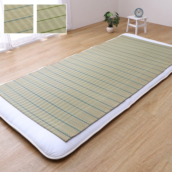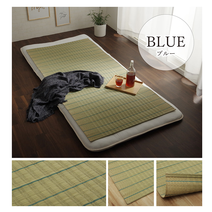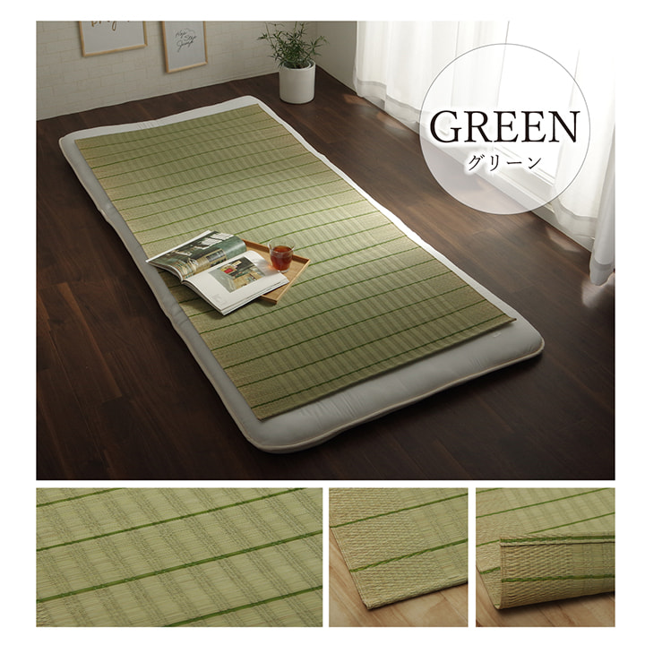 | 国産(九州産)のい草を使用したネゴザ(寝ござ)です。一本一本が太く、表皮が厚く繊維がキメ細かいので、弾力性があり、耐久性に優れています。い草には1.綿の約2.5倍の吸湿性があり汗のじめじめを軽減します。2.湿度の調整作用があり、蒸れにくく快適な就寝を促します。3.汗のにおいの元となる化学物質を90%以上抑え、においを軽減します。などの効果があります。また、ヒバエッセンス加工を施しています。(抗菌・防臭効果) |