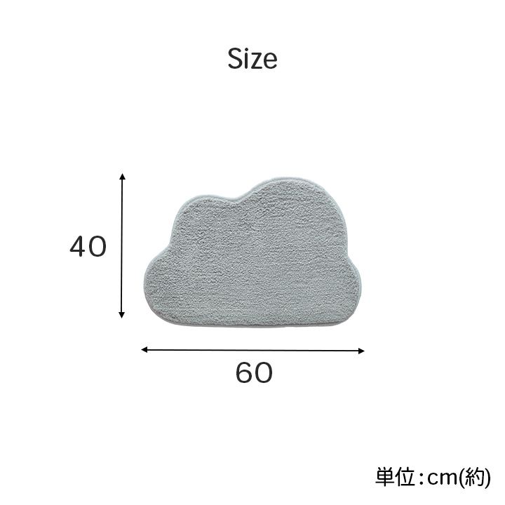 | "かわいい雲の形のふわふわマルチマットです。 バスマットとしてはもちろん、玄関マットやアクセントマットなど様々なシーンでお使いいただけます。 裏地はすべりにくい加工を施しています。 |