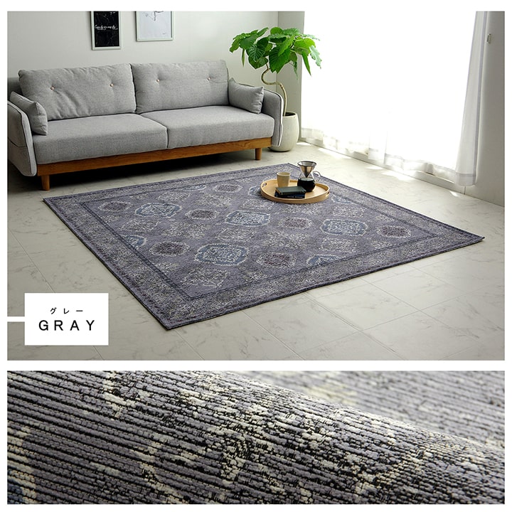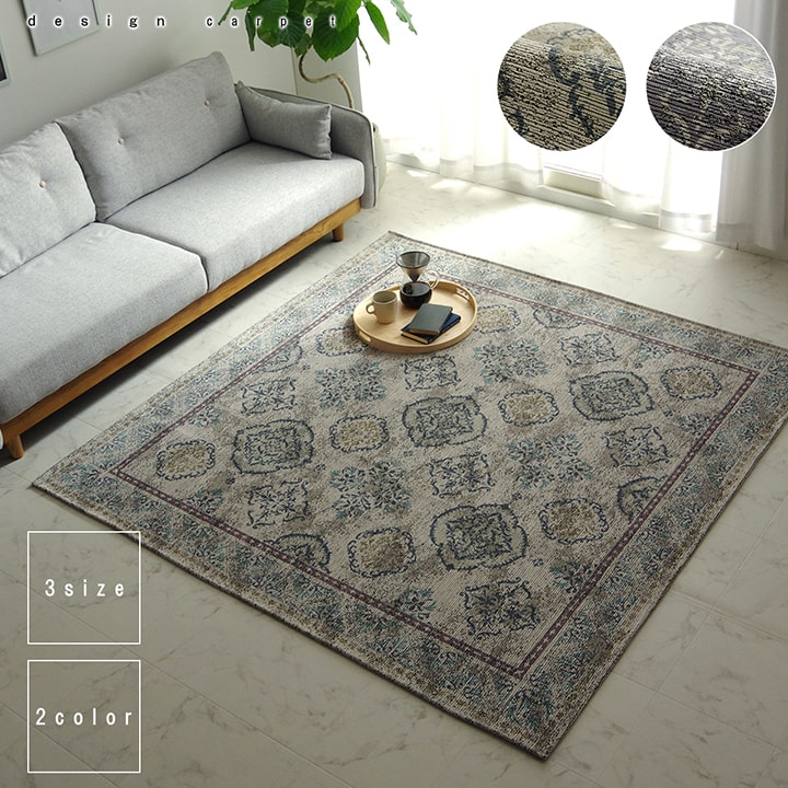 | 上品な風合いのジャカード織りで、アラベスク柄を表現したオリエンタルラグです。デザイン性が高く、耐久性にも優れています。 模様がかすれたように見え、アンティークな雰囲気を演出します。 遊び毛が出にくいシェニール糸を使用し、毛足が短いためお掃除も簡単です。 裏面にはフローリングを傷つけにくい不織布貼りで、滑り止め加工も施しています。 ホットカーペット、床暖房対応です。季節を問わず一年中お使いいただけます。 コンパクトに畳めるため、収納にも場所を取りません。又、軽量なため女性でも簡単に持ち運びできます。 |