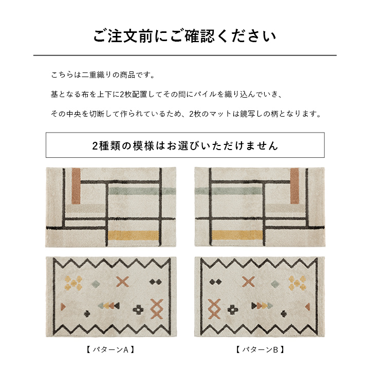 | 洗えません。 部分的に汚れたときは、市販のカーペットクリーナー、または中性洗剤(色落ちしないか確認のうえ)を薄く溶かしたぬるま湯で毛並みにそって布拭きして下さい。その後濡れたタオルなどで速やかに拭きとって下さい。※漂白剤は使用しないで下さい。 |