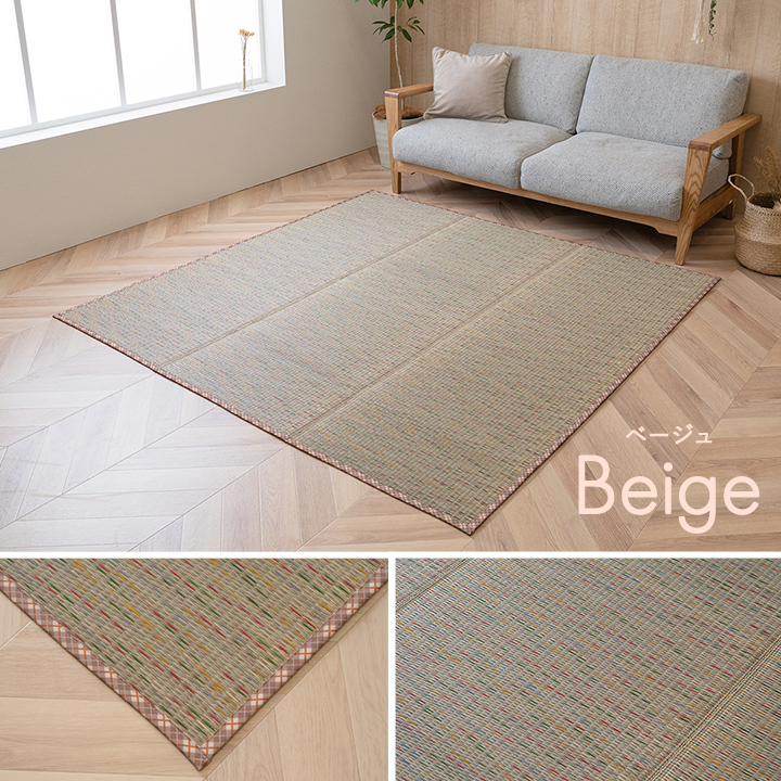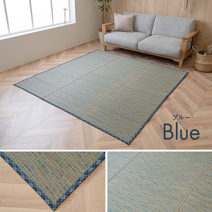 | 表地:い草 ※普通織 中材:ウレタンフォーム3mm 裏地:ポリエステル100%(不織布滑り止め) ヘリ:ポリエステル100% |