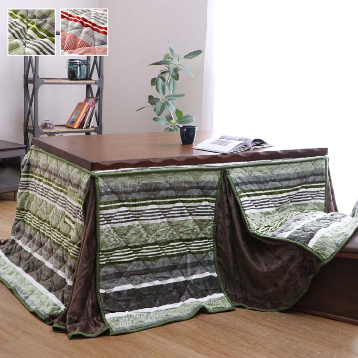 | ジャガード織の凹凸感が特徴的な素材感があるこたつ布団です。お部屋の雰囲気気を崩さない淡い色目とカジュアルでお部屋に合いやすいストライプ柄にしました。ダイニング用のこたつ台にご使用いただけます。薄手なので折りたたんでもかさばらず、コンパクトに収納できます。部分暖房のコタツは電気代もおトクです。 |