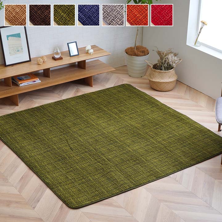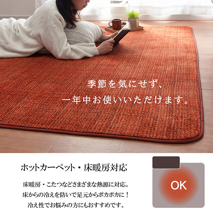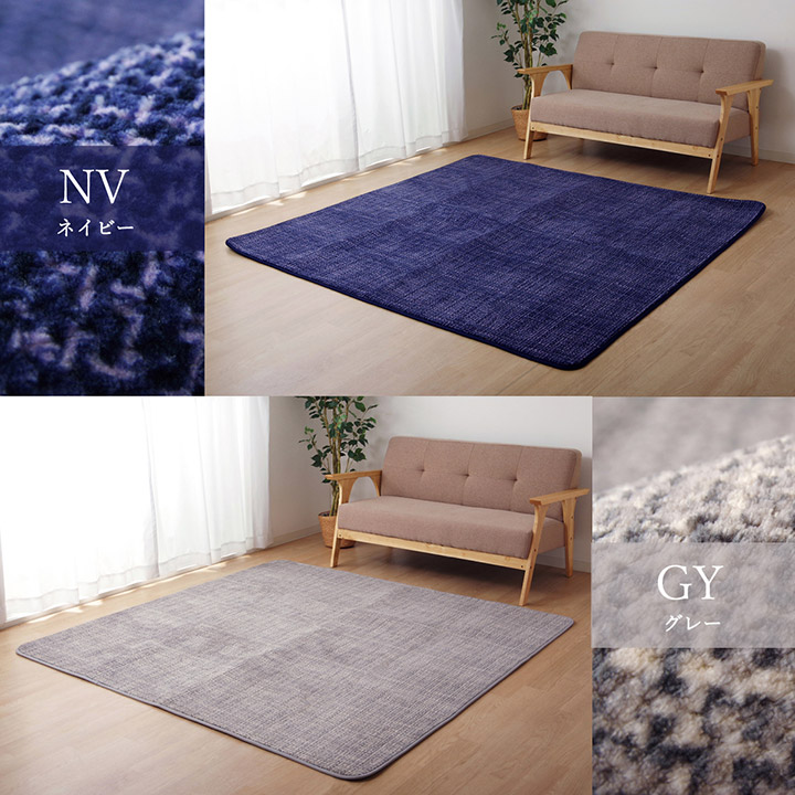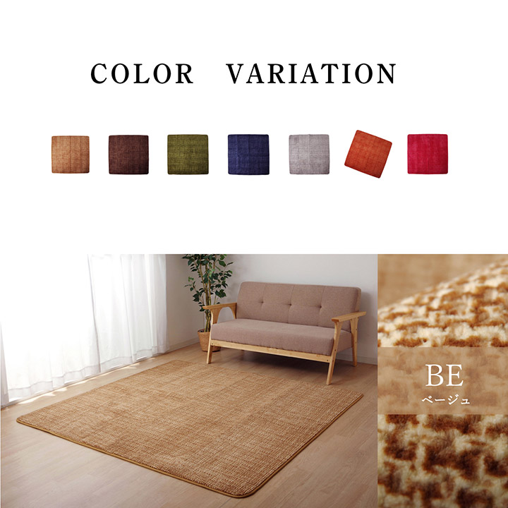 | 無地系のシンプルデザインです。表地は針抜きでポコポコとした凹凸を出し、なめらかな肌触りの珊瑚マイヤーを使用しています。裏面には滑りにくい加工を施しています。毛足が短いため、お掃除が簡単です。床暖房・ホットカーペット対応です。オールシーズンお使いいただけます。 |