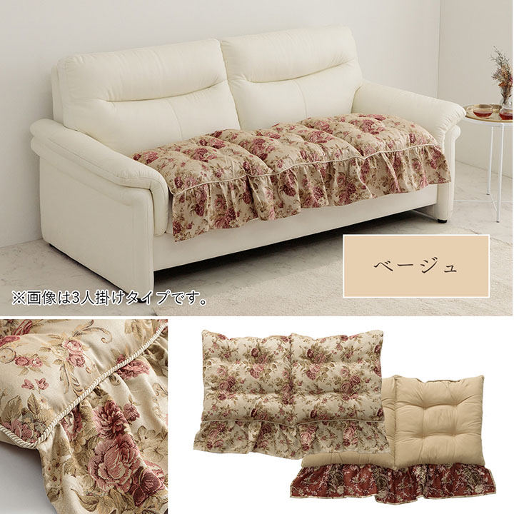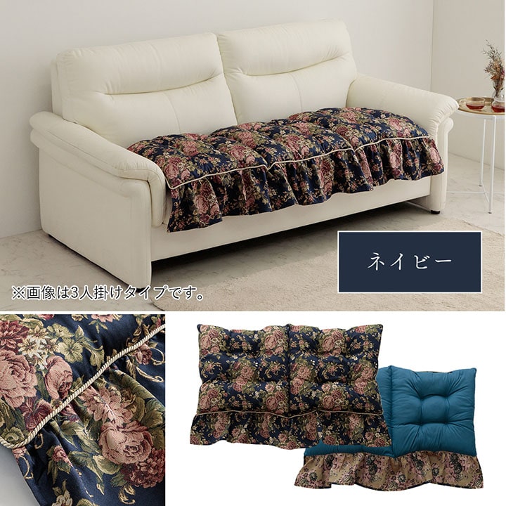 | "エレガントな花柄をプリントし、ジャガード織りの花柄を重ねた高級感のあるフリーシートです。 安心の国内綿入れ加工です。 ソファの汚れ防止に。 スカートのようなデザインがいっそうフェミニンな雰囲気を演出しています。 |