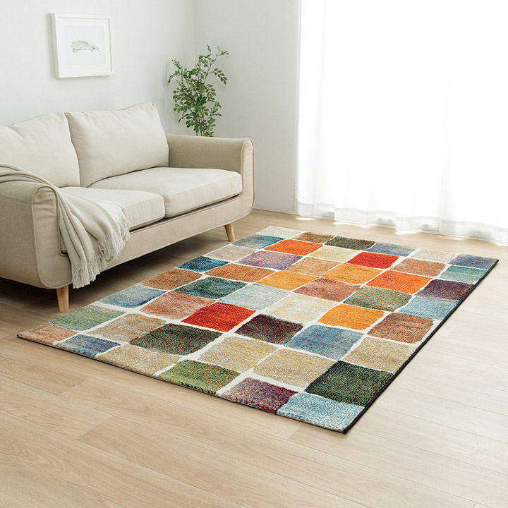 | "トルコ製のウィルトン織りカーペットです。 本商品のパイル部分にはポリプロピレン素材を使用しております。ポリプロピレンは汚れが付着しにくく、遊び毛や毛玉が非常に出にくいという特徴もあります。 本商品にはフリーゼセット加工を施しております。フリーゼセット加工でパイルをツイストすることによりボリューム感を出し、ふかふかとした肌感触に仕上げました。 経糸にジュート糸を使用しているため、抗菌防臭や消臭機能があり一年を通して安心してお使いいただけます。 床暖房・ホットカーペット対応で年間通して使用可能です。 ※ラグに厚みがあり密度が高い場合は熱が伝わりにくくなる場合がございます。 |