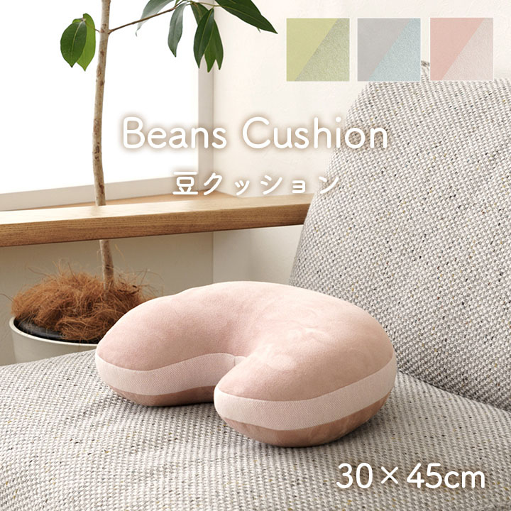 | "オールシーズン使えるスエード調のクッションシリーズ くすみカラーがかわいいグリーン・グレー・ピンクの3色展開 もちもちして気持ちいい触り心地の豆型クッション", |
