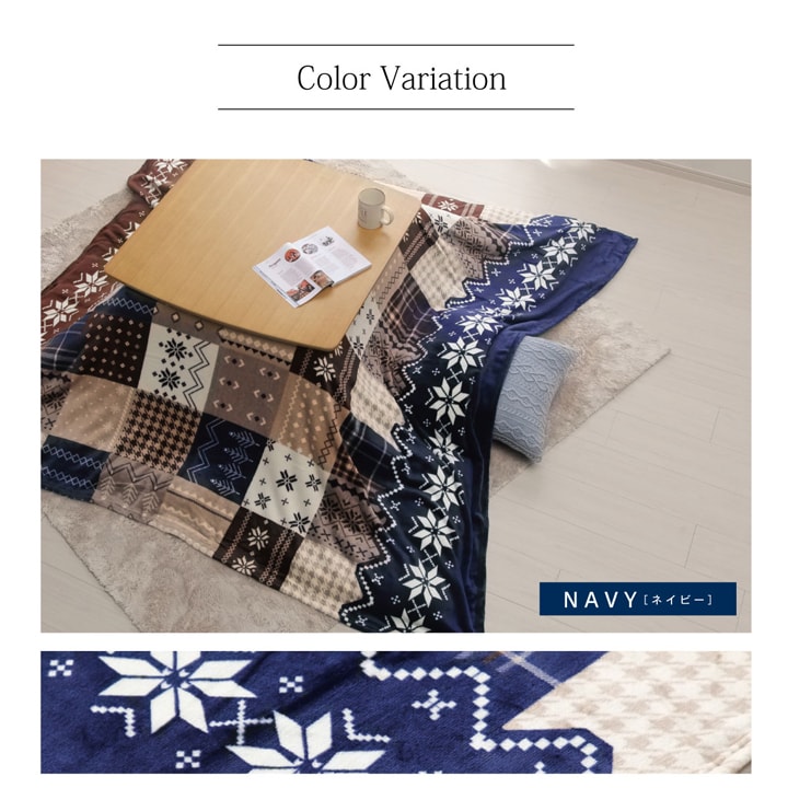 | 温かみのあるノルディック柄のこたつ布団用の上掛けです。生地には撥水加工を施しお水などをこぼしても浸透しにくくしているためペットや小さなお子様がいらっしゃるご家庭にはおすすめです。お手持ちのこたつ布団にかければお部屋の雰囲気を変えることができます。洗濯機で洗えるため清潔にご使用いただけます。 |