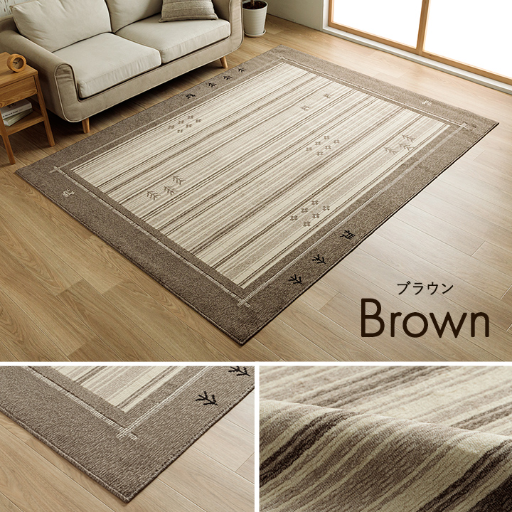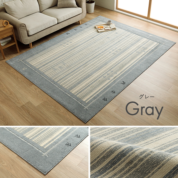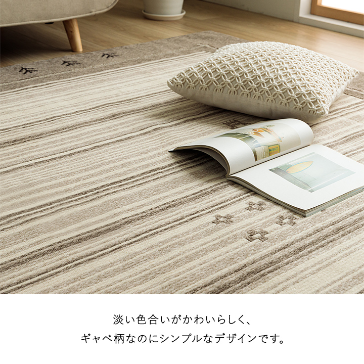 | "抗菌防臭・消臭効果・抗ウイルス効果のあるカーペットです。 密度が高く生地もしっかりしているため、めくれにくいのも特徴です。 毛足が短いためゴミが絡まりにくくお掃除しやすいだけでなく、ロボット掃除機もラクラク乗り越えることができます。 淡い色合いがかわいらしく、ギャベ柄なのにシンプルなデザインです。 ホットカーペットや床暖房にも対応できます。 使わない時は折りたたんでコンパクトに収納できます。 |