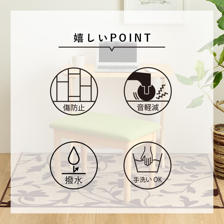 | ボタニカルテイストのおしゃれなカーペット。お子様用のデスクカーペットはもちろん、大人用の書斎やテレワークデスクにもおすすめです。 表地に撥水加工を施しているので、水分をこぼしてもサッと拭けてお手入れ簡単。 裏面は不織布だから学習机や椅子の移動も安心。床の傷防止に必要なアイテムです。 表面はループタイプで毛足が短いので、ゴミもたまりにくくお手入れも簡単。またポリプロピレン糸を使用しているから摩擦に強く、毛玉が出にくいのも特徴です。 厚みは5mmと薄いため、椅子の移動やお子様が歩く際もつまずきにくく安心してお使いいただけます。 ルームマットとしてキッズルームやベッドサイドに敷いたり、大きいサイズは2人用のダイニングカーペットとしてもお使いいただけます。 丸巻きでお届けするため、折りシワの心配もなくキレイに敷くことができます。 |