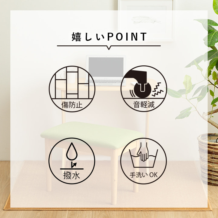 | シンプルなデザインのカーペット。お子様用のデスクカーペットはもちろん、大人用の書斎やテレワークデスクにもおすすめです。 表地に撥水加工を施しているので、水分をこぼしてもサッと拭けてお手入れ簡単。 裏面は不織布だから学習机や椅子の移動も安心。床の傷防止に必要なアイテムです。 表面はループタイプで毛足が短いので、ゴミもたまりにくくお手入れも簡単。またポリプロピレン糸を使用しているから摩擦に強く、毛玉が出にくいのも特徴です。 厚みは5mmと薄いため、椅子の移動やお子様が歩く際もつまずきにくく安心してお使いいただけます。 ルームマットとしてキッズルームやベッドサイドに敷いたり、大きいサイズは2人用のダイニングカーペットとしてもお使いいただけます。 丸巻きでお届けするため、折りシワの心配もなくキレイに敷くことができます。 |