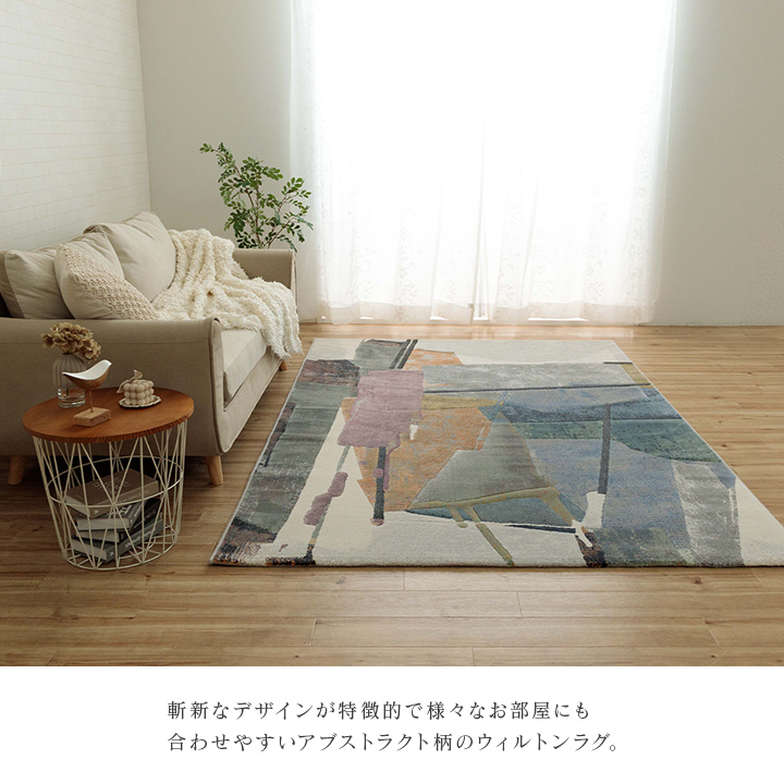 | "斬新なデザインが特徴的で様々なお部屋にも合わせやすいアブストラクト柄のウィルトンラグ。 インパクトのあるカラーデザインにドロップステッチ製法を組み合わせることでより立体感を持たせています。 複数のカラーが入り混じって見えるデザインは、高見え効果もあります。 ノット数が500,000ノットと高いため、高密度でしっかりした踏み心地です。 パイルの長さも11mmと長く、重厚感のある仕上がりになっております。 緯糸にはジュート糸が使われており、抗菌防臭・消臭効果もあります。 汚れが付着しにくく、遊び毛や毛玉が出にくいという特徴のポリプロピレン糸を使用しています。 ホットカーペットカバーや床暖房にも対応しております。 (ラグに厚みがある場合・ラグの密度が高い場合は、熱が伝わりにくくなる場合がございます。) ※掲載写真は表記サイズと異なる場合がございます。 |