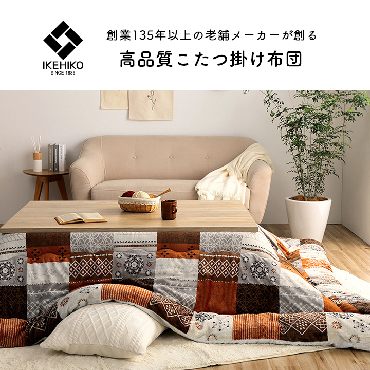 | "パッチワーク調で細かいデザインが特徴的なあったかこたつ布団。冬を連想させるデザインを組み合わせて可愛らしい印象も与えてくれます。 表面には撥水加工を施しており水分をはじくため、サッと拭き取るだけでお手入れ簡単。 表裏両面を暖かくなめらかな肌触りのフランネルにし、どこに触れても暖かくなるようにしました。 たっぷり入った東レマッシュロン綿がふかふかとした弾力性と保温性を高め、「軽くて暖かい」を実現しました。 ふっくらとしたボリューム感は国内で綿入加工をしている商品だからできる仕上がり。1枚1枚丁寧に仕上げた安心の品質です。 ※こたつ台、敷布団は別売りです。 ※ 掲載写真は表記サイズと異なる場合がございます。 ※ ふとんをやぐらの中に押し込んだり、座イスやイス全体をこたつの中に入れたまま使用しないでください。 ふとんがヒーターに当たらないようにご使用ください。(火災の原因になります) ご使用により、ふとんが焦げた場合につきましては、返品・交換を承ることができませんので、あらかじめご了承ください。 ※掲載写真は表記サイズと異なる場合がございます。 |