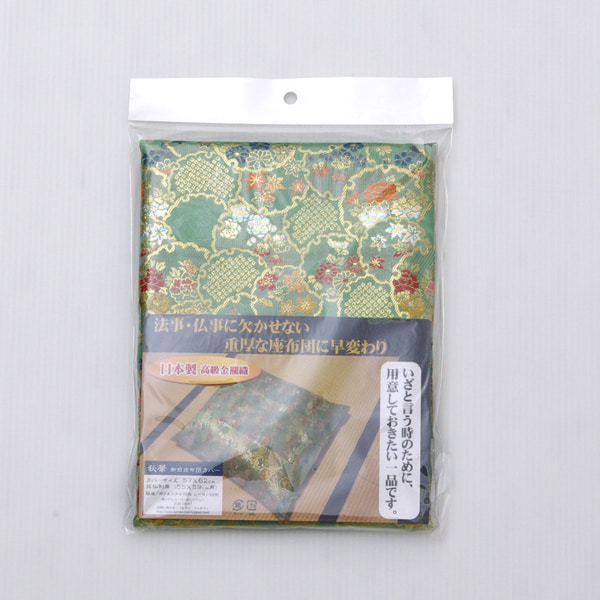 | 金襴生地を使用した銘仙判サイズ(座布団サイズ:55×59cm)の仏前座布団用カバーです。お手持ちの座布団に被せるだけで仏前座布団としてご使用頂けます。いざという時も便利な一枚です。本製品は着脱しやすいファスナータイプです。 |