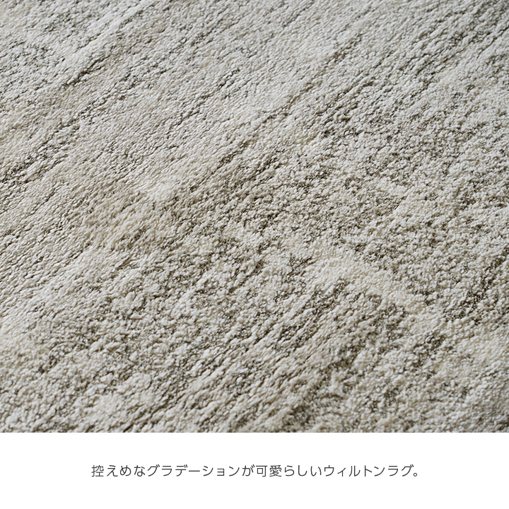 | "控えめなグラデーションが可愛らしいウィルトンラグ。 ナチュラルテイストであらゆるお部屋に合わせやすいデザインです。 ふわっとして柔らかく、思わず触れたくなるような肌触りです。 スッキリした印象と上質感を演出するためにフチの部分にもこだわりました。 パイルの長さが14mmと長いため、ボリューム感がありふわっとした踏み心地です。 ホットカーペットカバーや床暖房にも対応しております。 (ラグに厚みがある場合・ラグの密度が高い場合は、熱が伝わりにくくなる場合がございます。) ※掲載写真は表記サイズと異なる場合がございます。 |