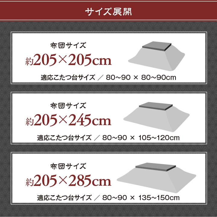 | 光沢があり高級感のあるデザインとオリンピックを意識したカラー展開の国産こたつです。上品で重厚感のあるジャガード生地を使用しています。東レマッシュロン綿を使用しています。部分暖房のコタツは電気代もおトクです。 |