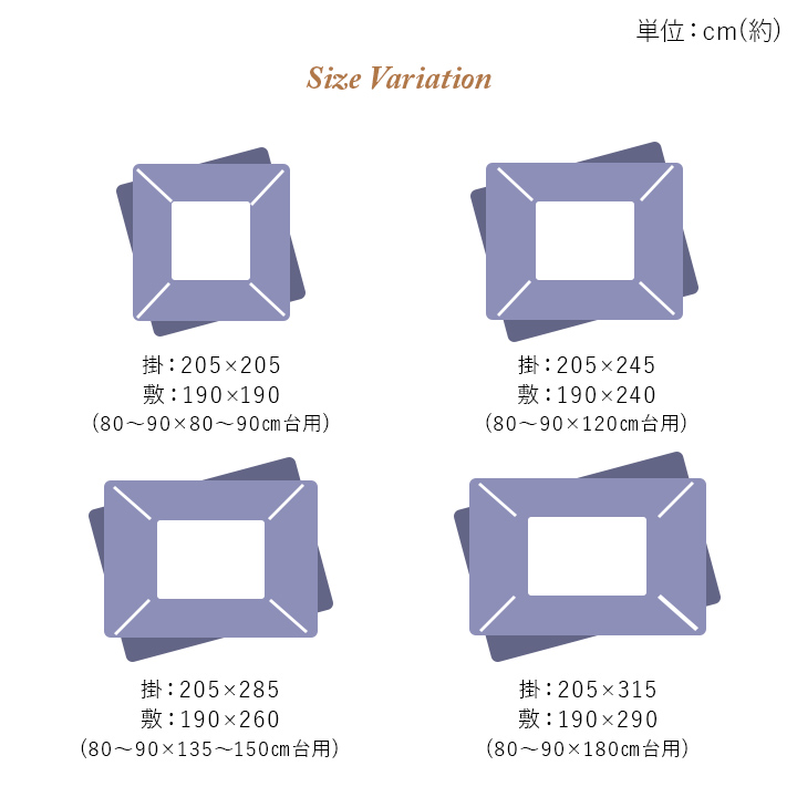 | 華やかな雰囲気を演出してくれるエレガンス柄のこたつ布団。 こたつ布団と敷布団の2点セットで統一感のあるお部屋に! ふっくらとしたボリューム感は国内で綿入加工をしている商品だからできる仕上がりです。 裏地にはあったか素材のフランネルを使用しています。 ※こたつ台は別売りです。 ※ふとんをやぐらの中に押し込んだり、座イスやイス全体をこたつの中に入れたまま使用しないでください。ふとんがヒーターに当たらないようにご使用ください。(火災の原因になります)ご使用により、ふとんが焦げた場合につきましては、返品・交換を承ることができませんので、あらかじめご了承ください。 ※掲載写真は表記サイズと異なる場合がございます。 |