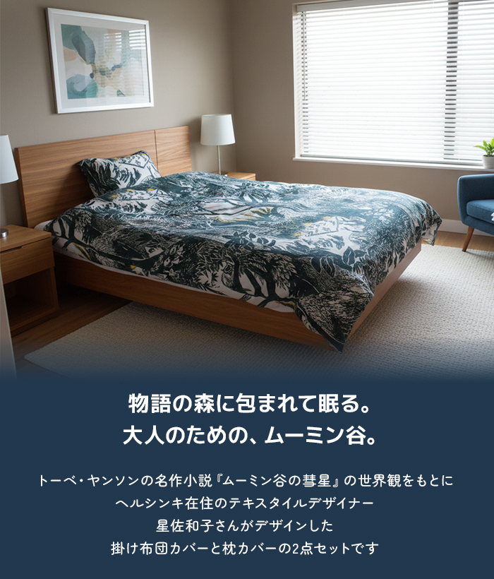 物語の森に包まれて眠る。大人のための、ムーミン寝具。