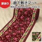 【訳あり大特価】 アウトレット品 洗える 廊下マット ロングカーペット 長さ690~700cm ピュアローズ (Y) 滑り止め付き 高耐久 キズ防止 花柄 セール